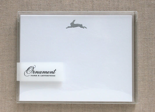 Flat Card Set with Letterpress Rabbit in matte silver